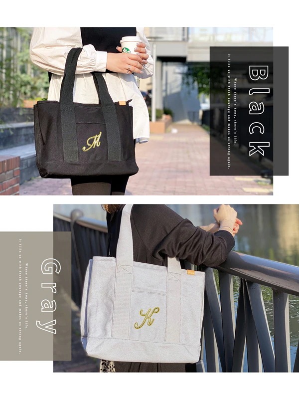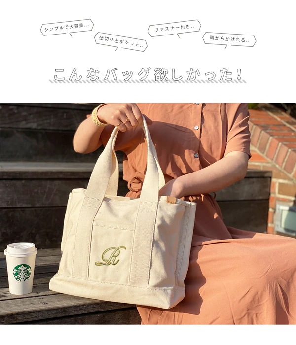 2025 エコバッグ 大容量 レディース 仕切り イニシャル キャンバス ファスナー付 肩掛け 大きめ トラベル 旅行 バッグ 仕切り多め A4 プレゼント ギフト トートバック 韓国ファッション