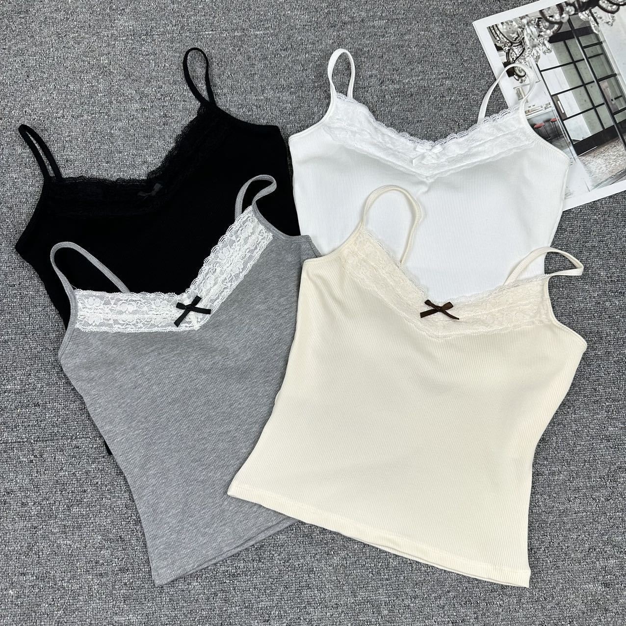 2024 人気 カップ付きインナー ベスト 新しいVネックレーススリム 中薄いボトムス キャミソール タンクトップ ヨガ 美背 レディース キャミソール