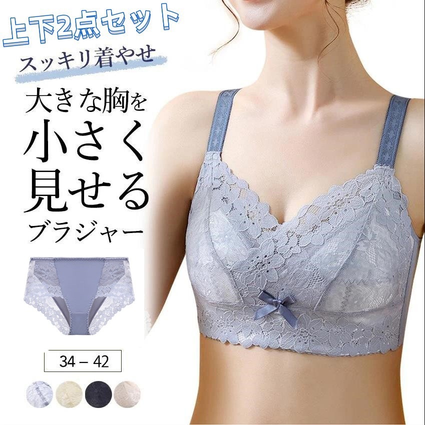 胸を小さく見せるブラ ノンワイヤー 胸を小さく見せる 上下2点セット補正下着 ブラ ミニマイザーブラ フラットブラ 胸を小さくみせるブラ ブラジャー 着やせ 20代 30代 40代 50代