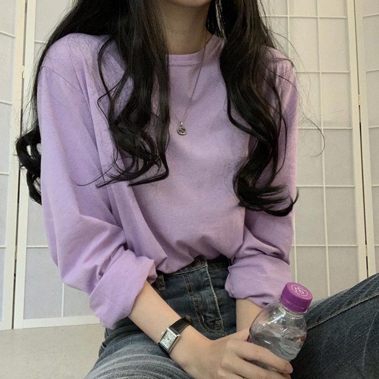 レディース ロンT 2点入り 長袖 長そで トップス Tシャツ カットソー クルーネック 長袖Tシャツ 2点入り インナー 着痩せ ゆったり 重ね着 秋 冬 丸首 無地 カジュアル シンプル 白