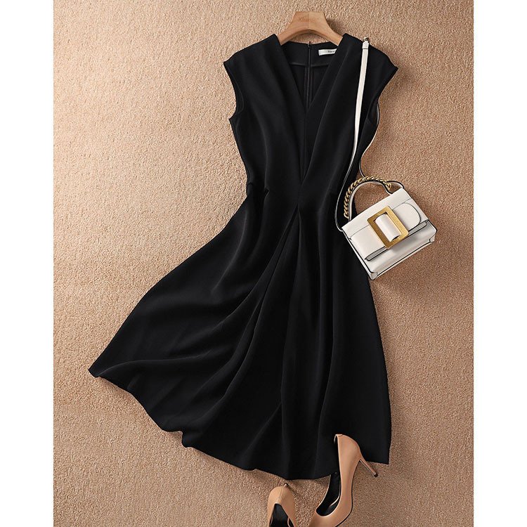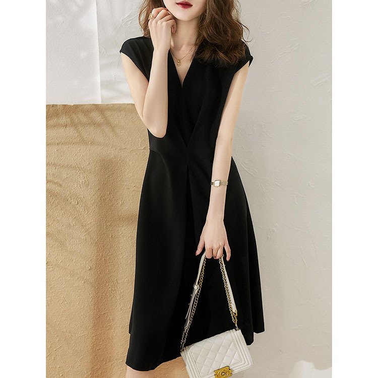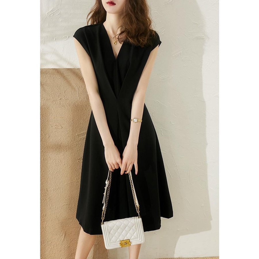 ワンピース レディース 春夏 40代 きれいめ マキシワンピース 半袖ワンピース 黒 vネック Aラインスカート オシャレ 大人 ゆったり 通勤 OL 韓国風 30代 50代