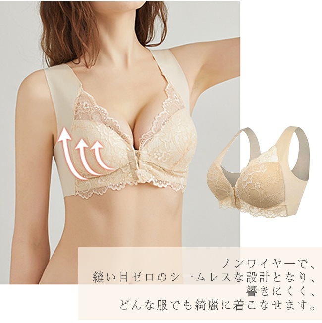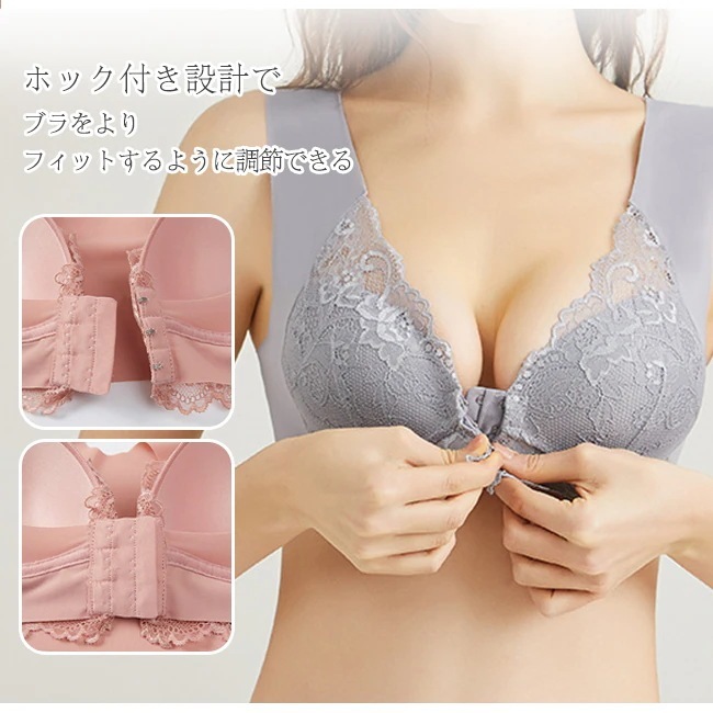 ナイトブラ フロントホックブラ レース ブラジャー 美胸 24時間使える ノンワイヤー シームレス インナー 下着 リラックスブラ 前ホック 肌着
