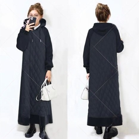 2024秋冬新品 日系 大きめサイズ ロングスウエットフード付き 中綿コートワンピース 二点セット ワンピース秋冬 ロングワンピース シャツワンピース メガ割