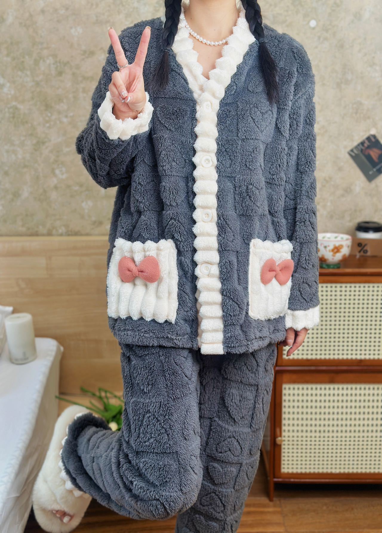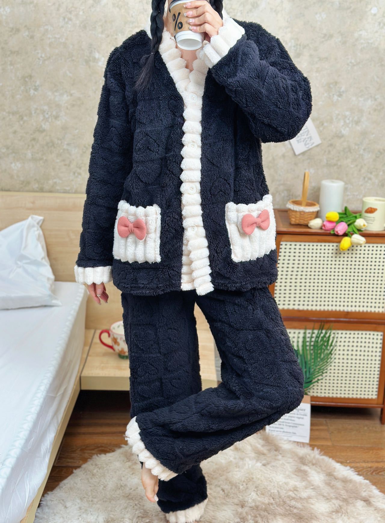 パジャマ ふわもこ 超保温モテルームウェア 裏起毛 超保温ふんわり肌触りスウェットルームウェア パジャマ