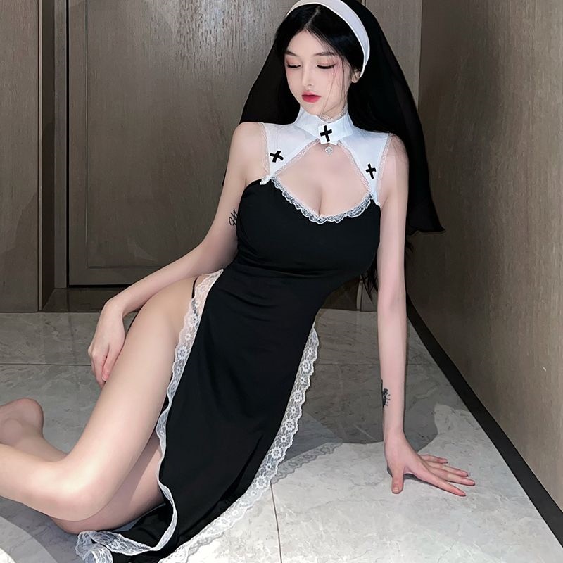 コスプレ 情趣下着セクシーコスプレシスター制服cosゲーム装透かし彫りフォークロングスカート コスプレ 変装 仮装