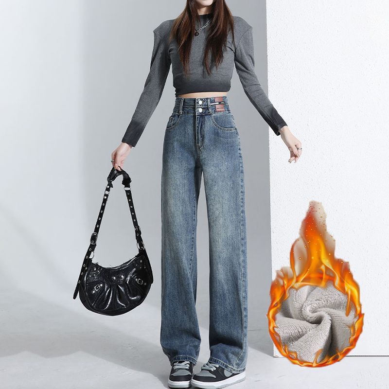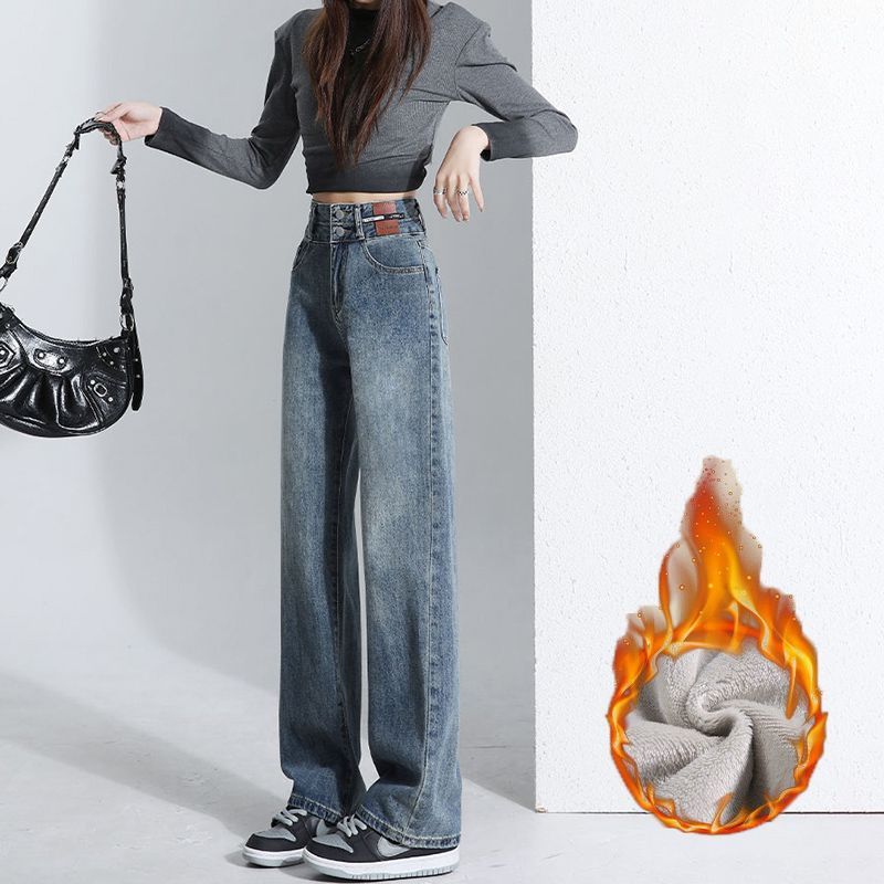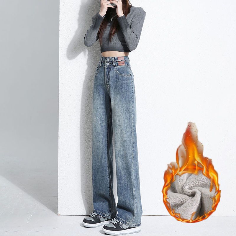 裏起毛パンツ ワイドパンツ 裏起毛 デニムパンツ ロングパンツ レディース 体型カバー 着痩せ ゆったり 韓国ファッション デニム ジーンズ