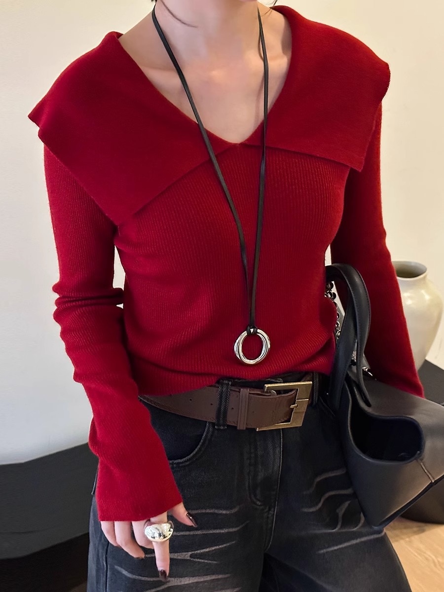 2025新作韓国ファッション秋冬ニットTシャツ 4カラー秋ニット レディース 無地 ニット プルオーバー リブニット トップス ニット