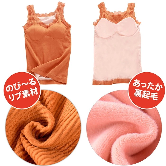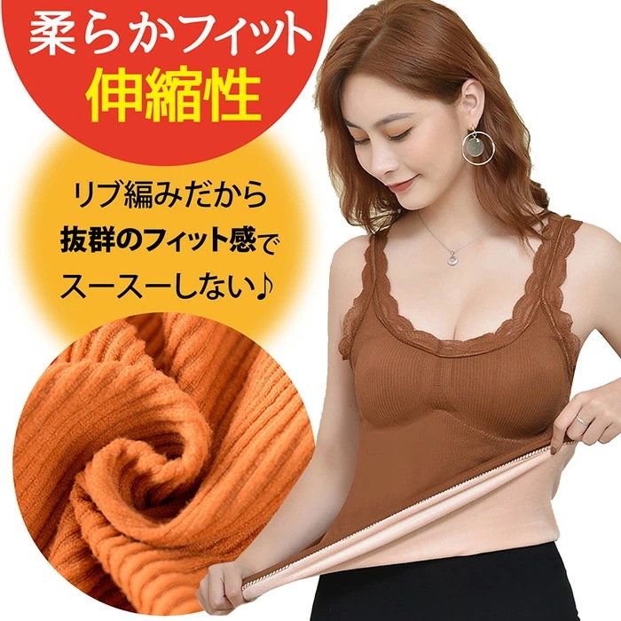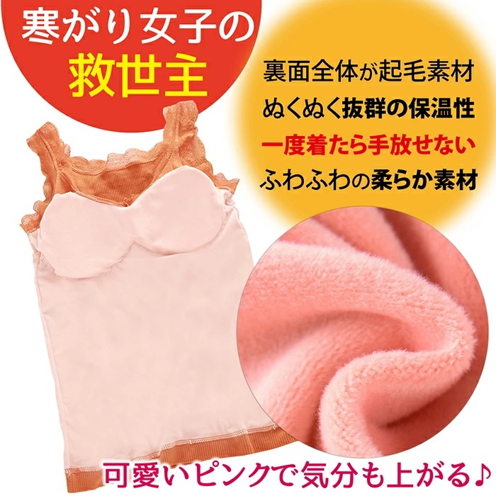 キャミソール 暖かい あったか インナー 裏起毛 温活 レース タンクトップ カップ付 ふわふわ 防寒 温活 冷え 秋 冬 重ね着 レース ナイトブラ カップ付 黒 ブラック ピンク
