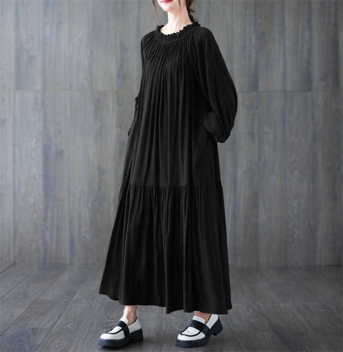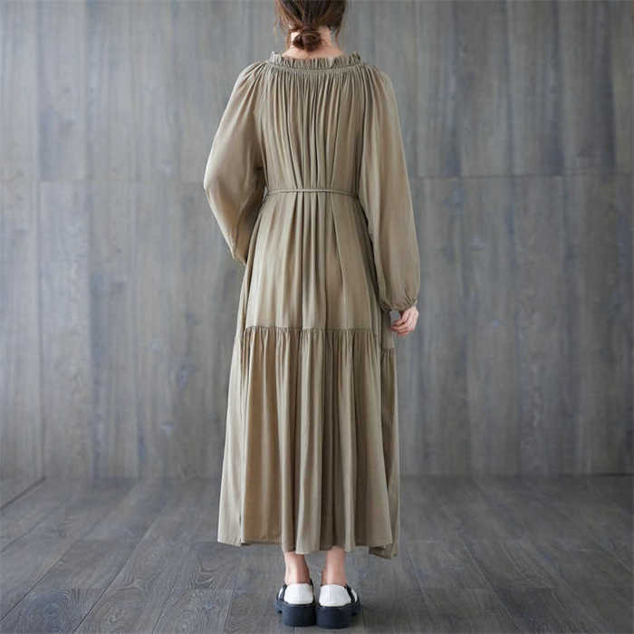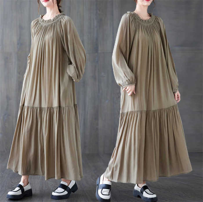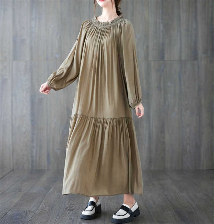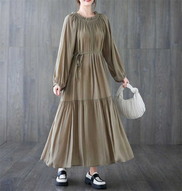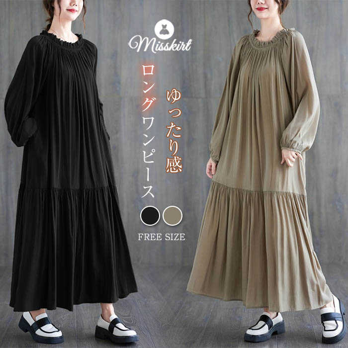 ワンピース ワンピ レディース ロングワンピース プリーツ 長袖 ロング丈 マキシ丈 ゆるっとワンピース 体型カバー 無地 シンプル Aライン 大きいサイズ 春 夏 秋 新作 紐 30代 40代 50
