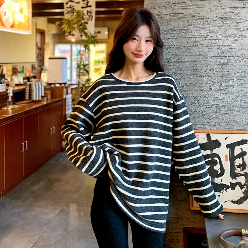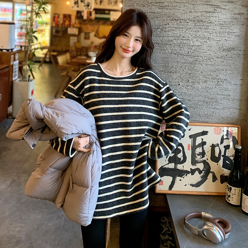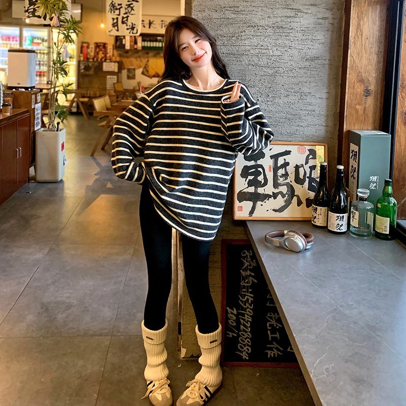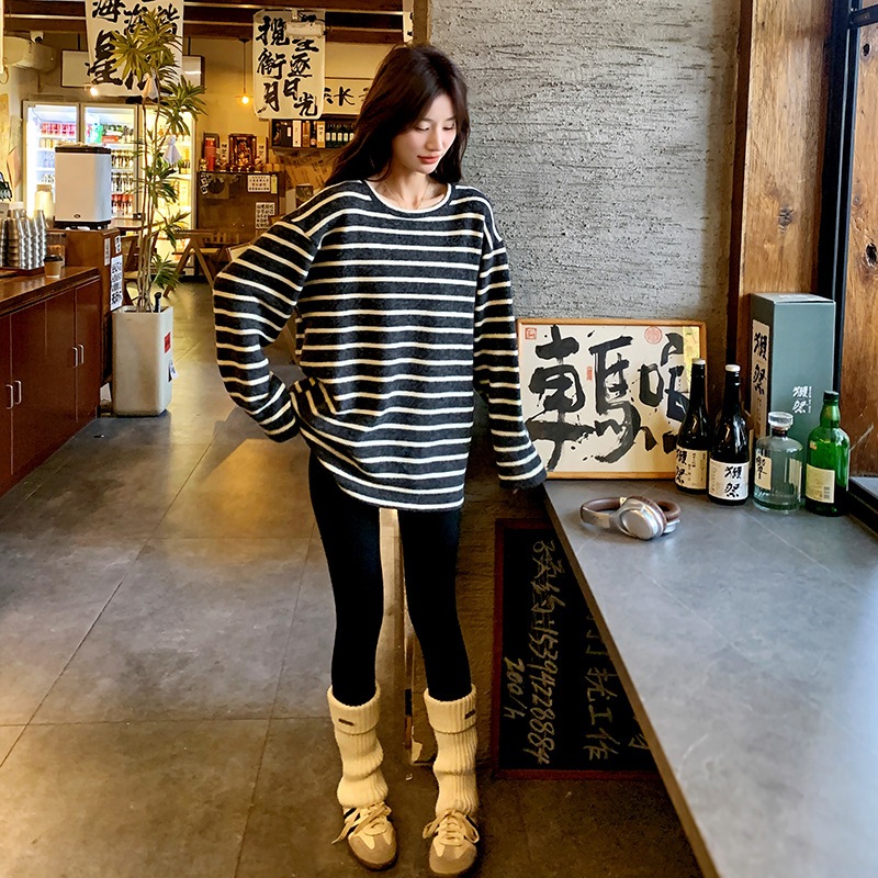 レトロなぶつかり色の小柄ストライプニット2024新作おしゃれなゆるふわニット チュニック