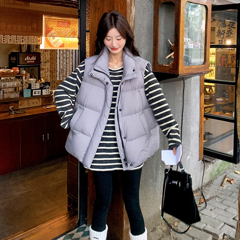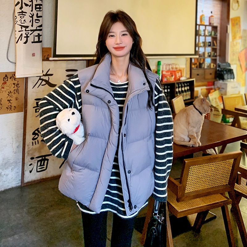 韓国版ファッション百合白鴨絨立領羽毛ベスト2024新型小柄保温厚手ジャケット ベスト