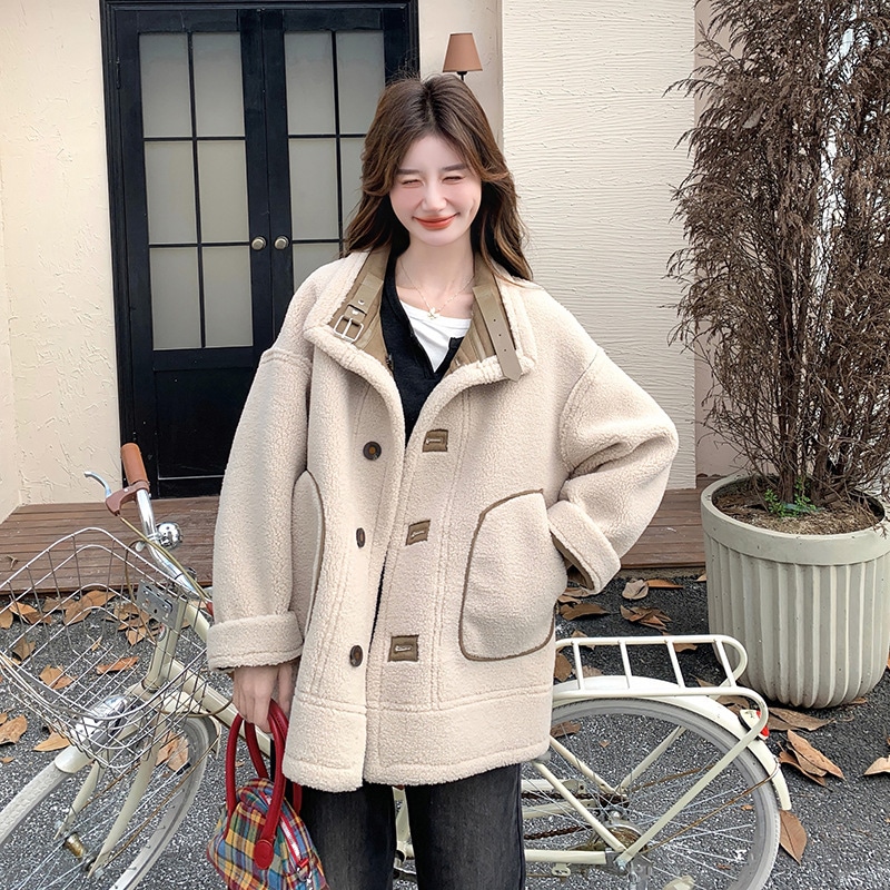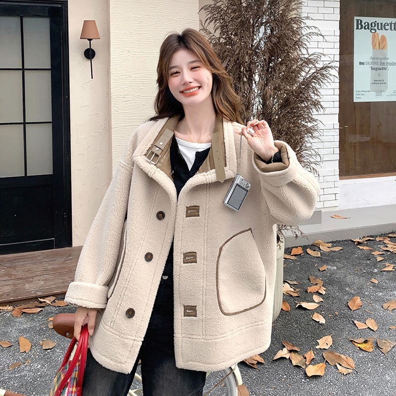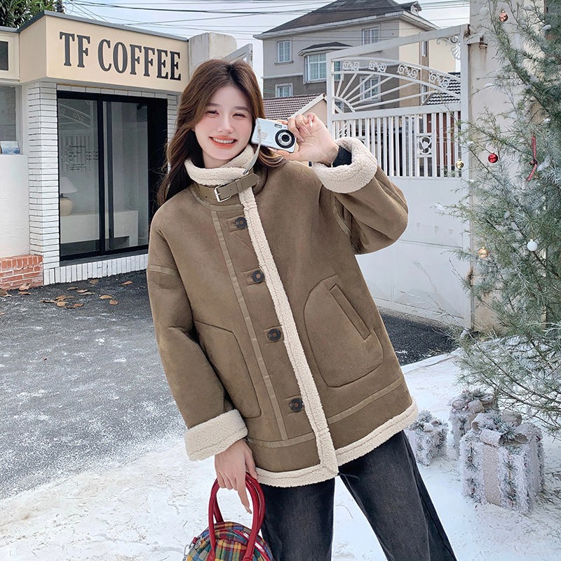 両面にスエード毛皮一体ラム毛皮のコート2024新型厚手小柄機関車綿入れ ダウンジャケット コート