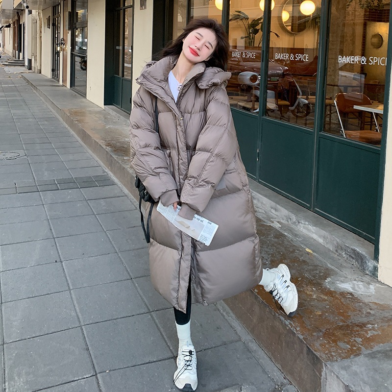 韓国版ゆったり白アヒルの羽毛ダウン2024新型ファッションカジュアルロングワンピース厚手のパン着 ダウンジャケット コート