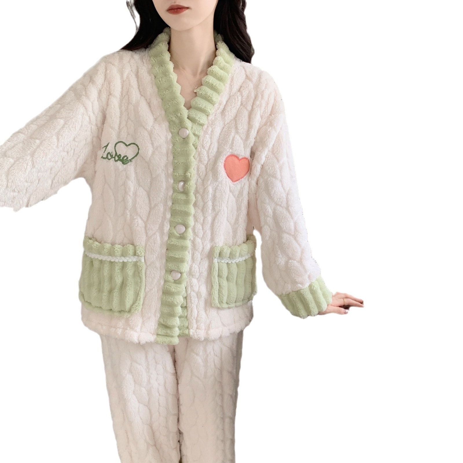 パジャマ レディース 珊瑚絨毯パジャマ女性の冬の新型加絨厚保温スイートルームウェアセット 部屋着 セットアップ 可愛い モコモコパジャマ ルームウェア