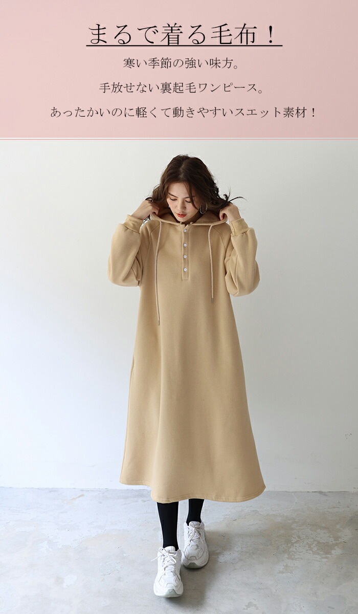裏起毛 ワンピース パーカーワンピース レディース 裏地 裏起毛ワンピース 裏フリースワンピース 裏ボア 春秋 冬 暖か ロング スカート ロングスカート 無地 フード付