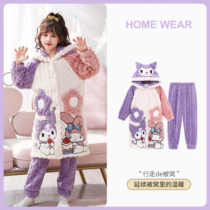子供用パジャマ秋と冬の新しいスタイルクロミコーラルベルベット女の子プリンセス女の子ホーム服厚いネグリジェスーツアニメコミック パジャマ