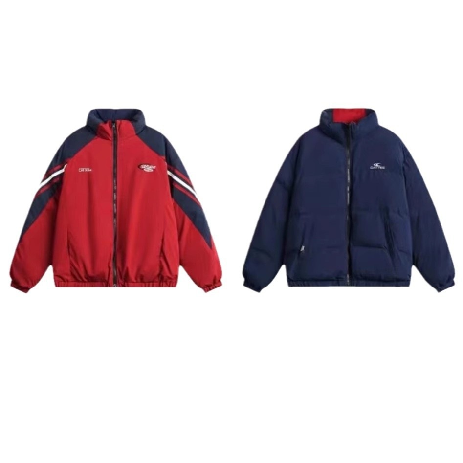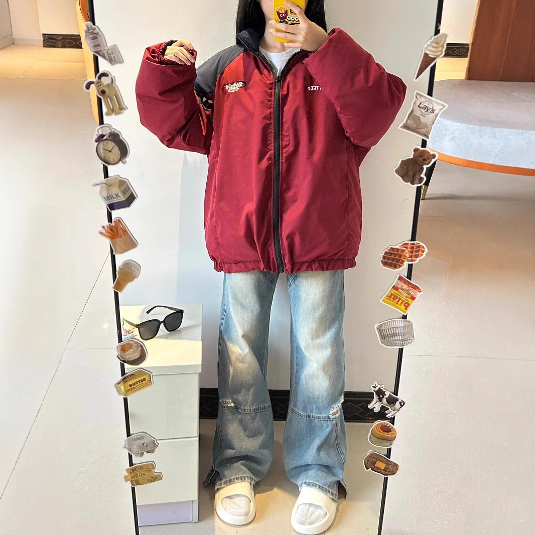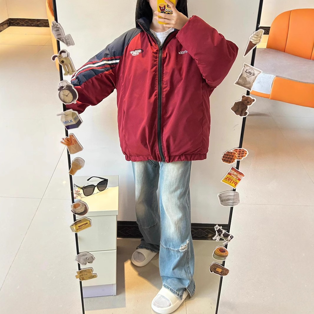 良い品質の綿を入れた両面着の綿入れ男女を厚くした韓国系パッチワーク学生ジャケット綿入れカップルコート ダウンジャケット コート