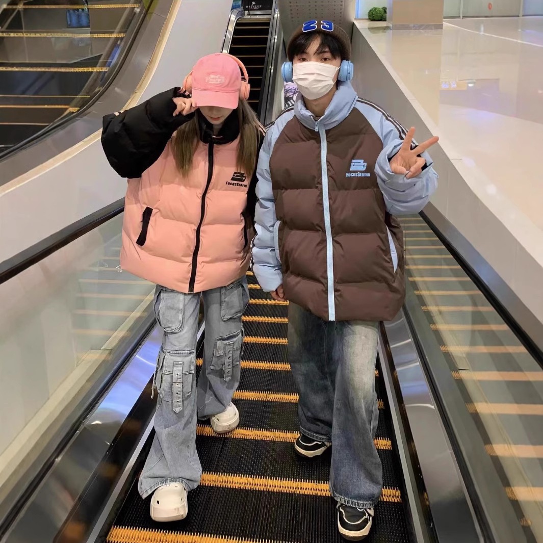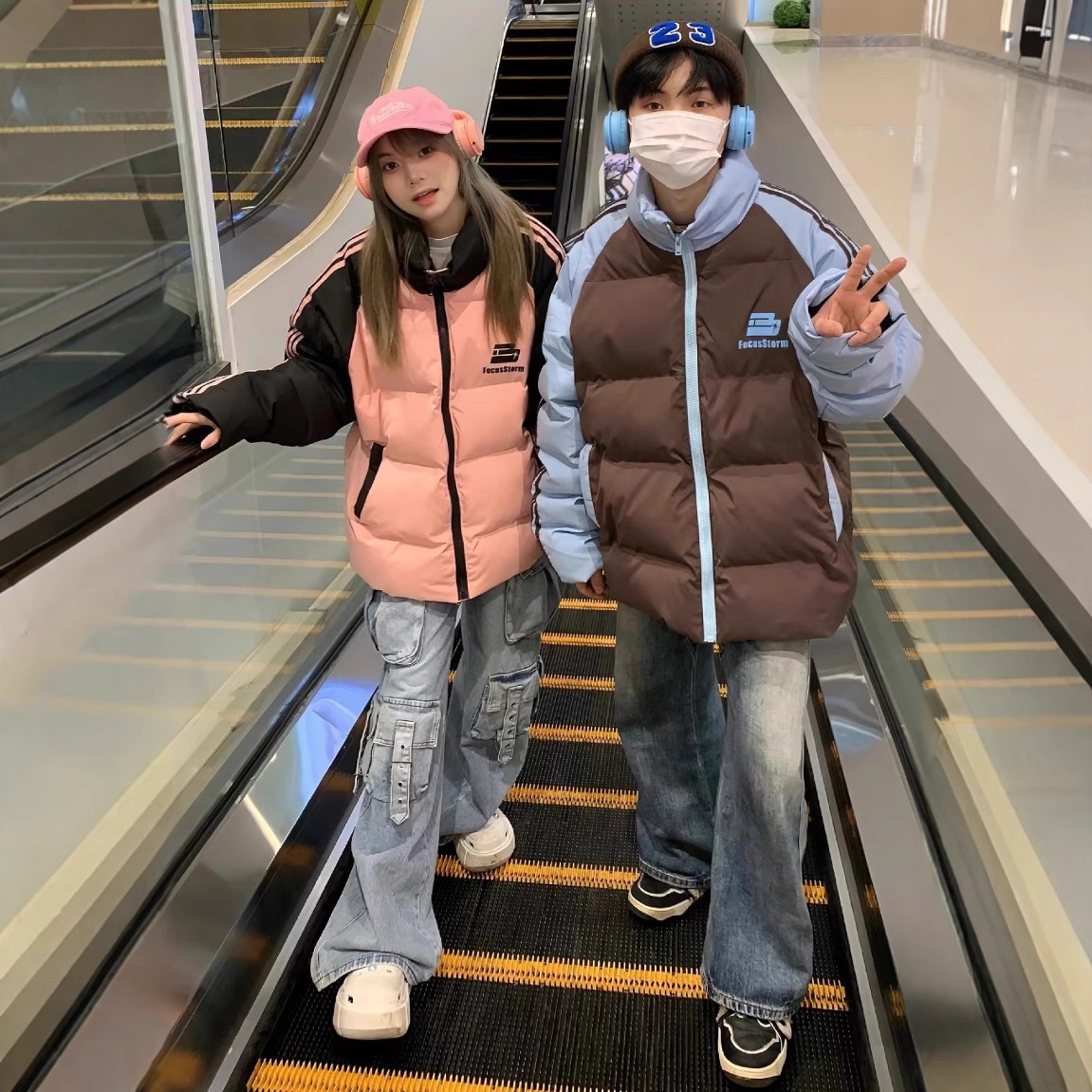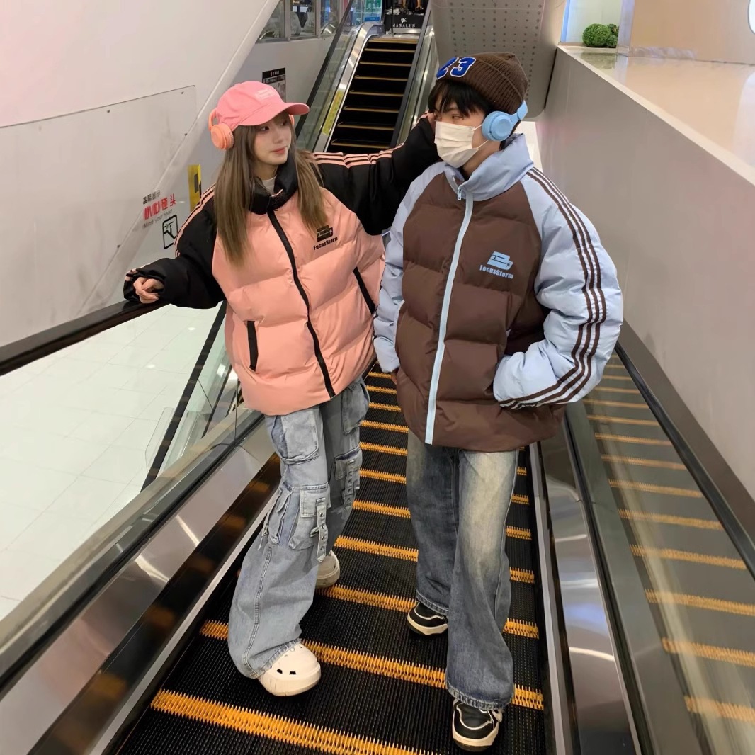 好品質綿充填アメリカンカラーストライプ綿服女子学生厚手パン服カップルコートブーム ダウンジャケット コート