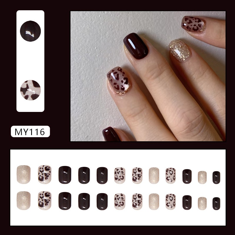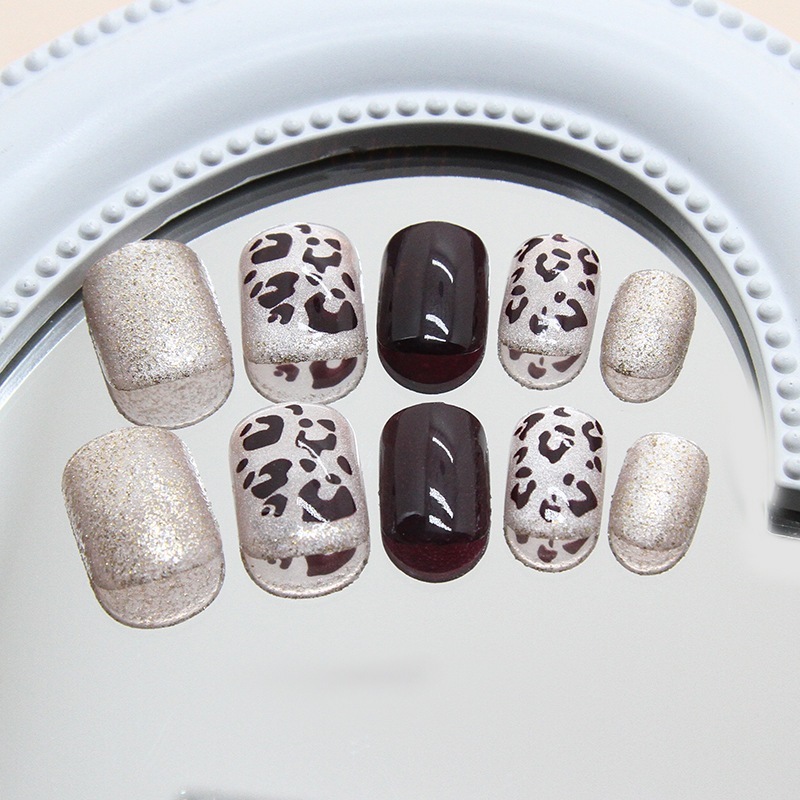 ネイルパーツ ビーズヒョウ柄細閃キャッツアイ秋冬ファッション白見え雰囲気ショートネイルパッチ24枚取り外し可能 メガ割 ネイルチップ