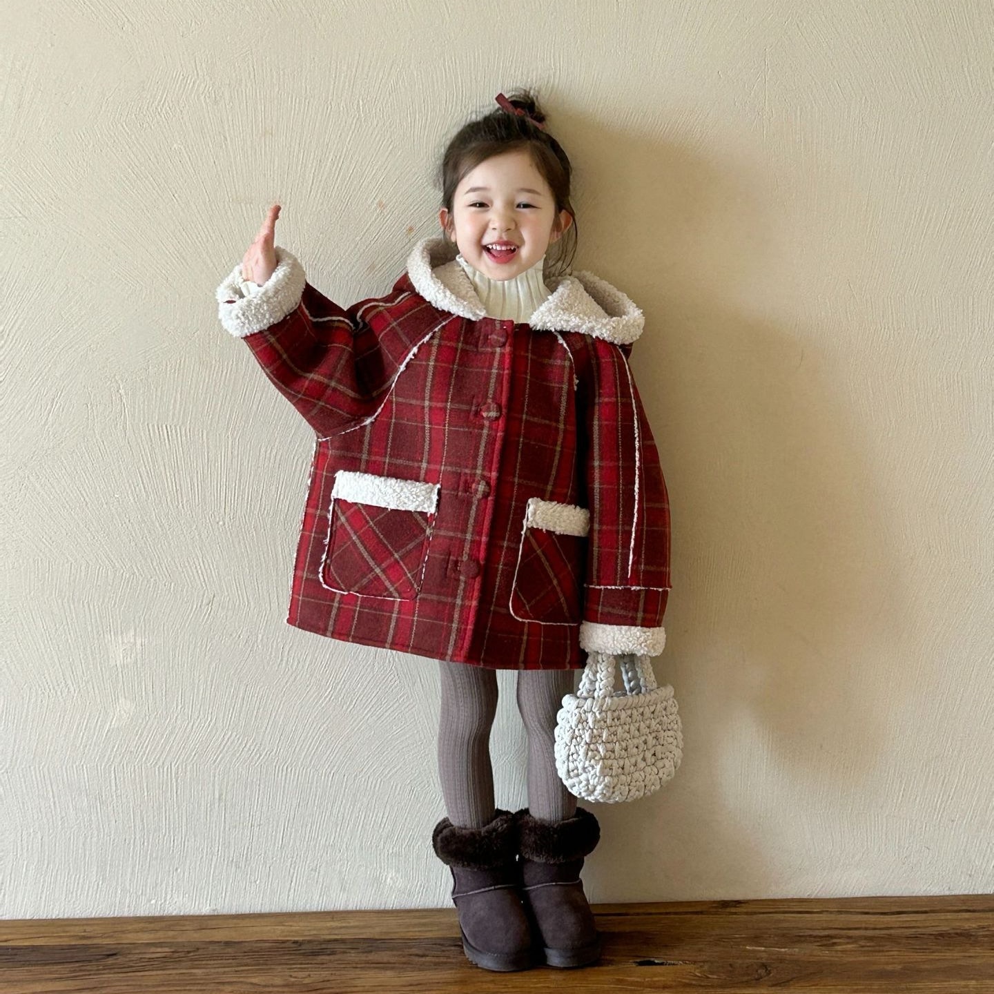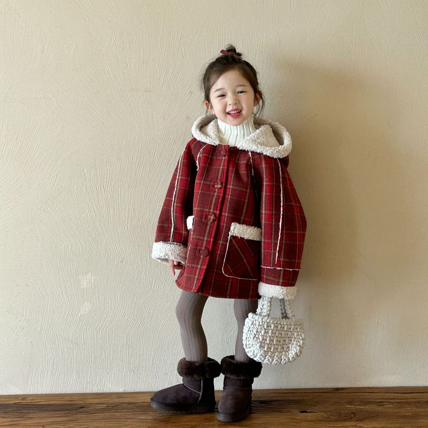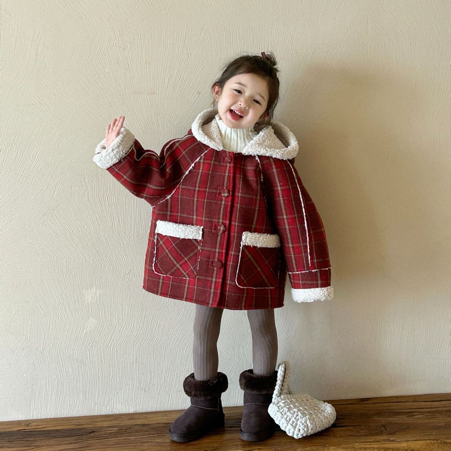 2024冬の新作子供服韓国版子供服チェックコートファッション 女の子 キッズ アウター ジャンパー コート ジャケット