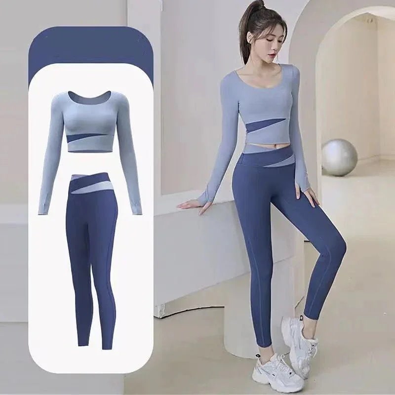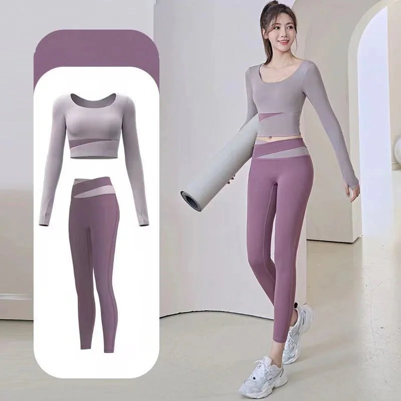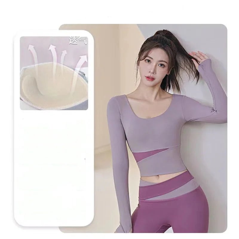ファッションヨガウェア セットアップ ヨガトップス 長袖 トップス ノーブラ フィットネスウェア スポーツ パンツ 吸汗 速乾 レディース 上下セット 運動セット