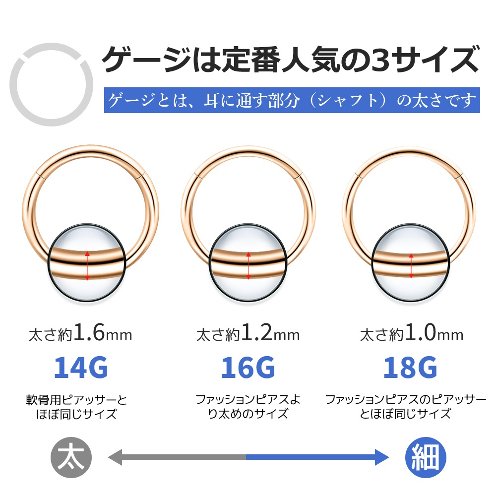 ボディピアス 軟骨 ピアス リングピアス 金属アレルギー対応 レディース 18G 16G 14G その他