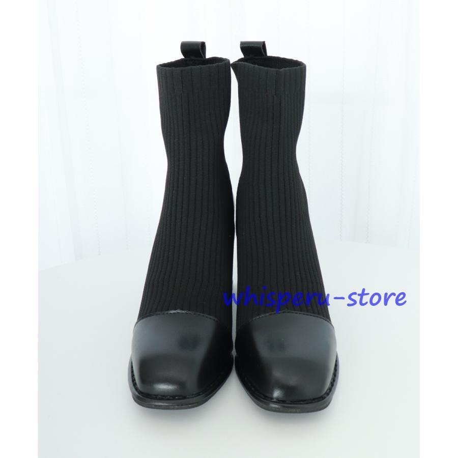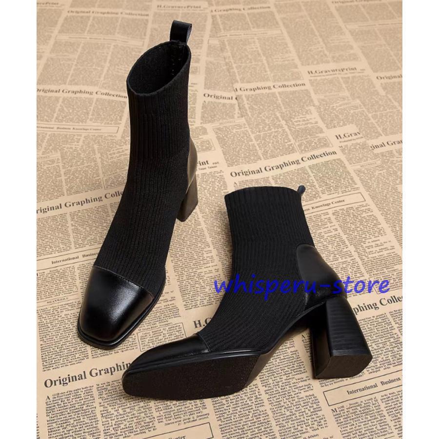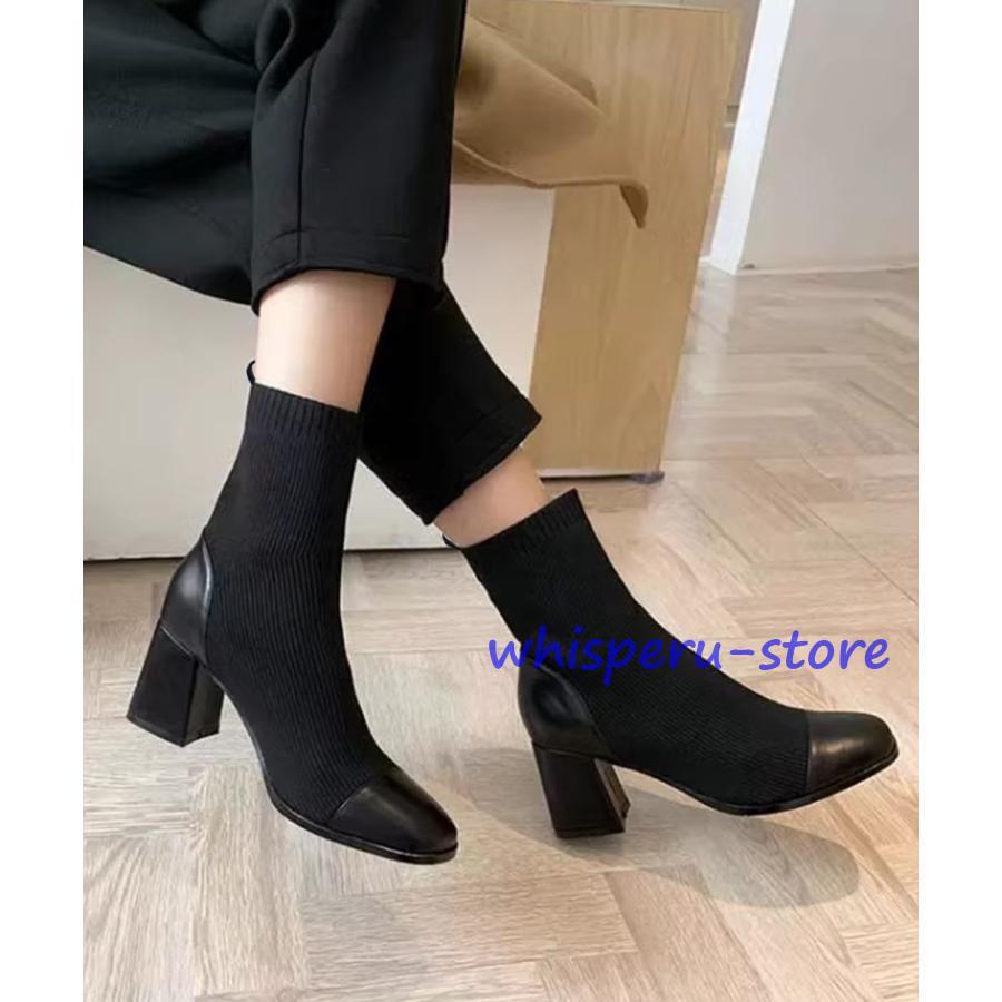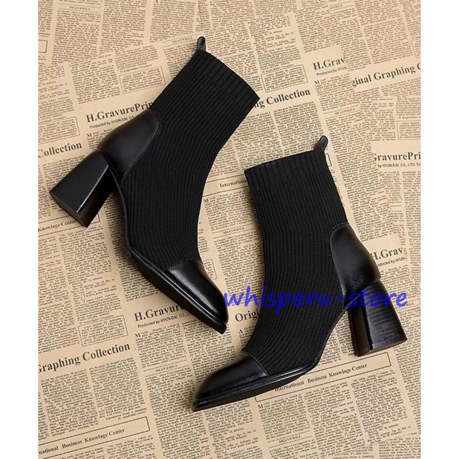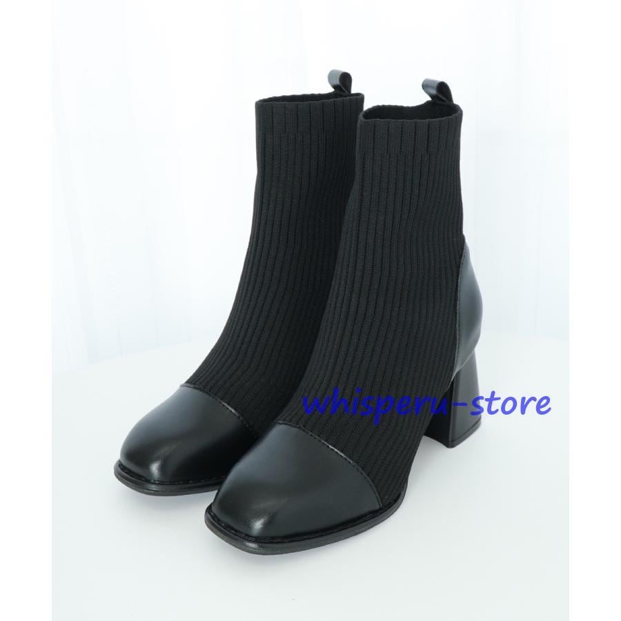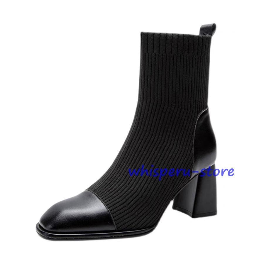 ソックス風ブーツ レディース 太ヒール ショート ミドルブーツ