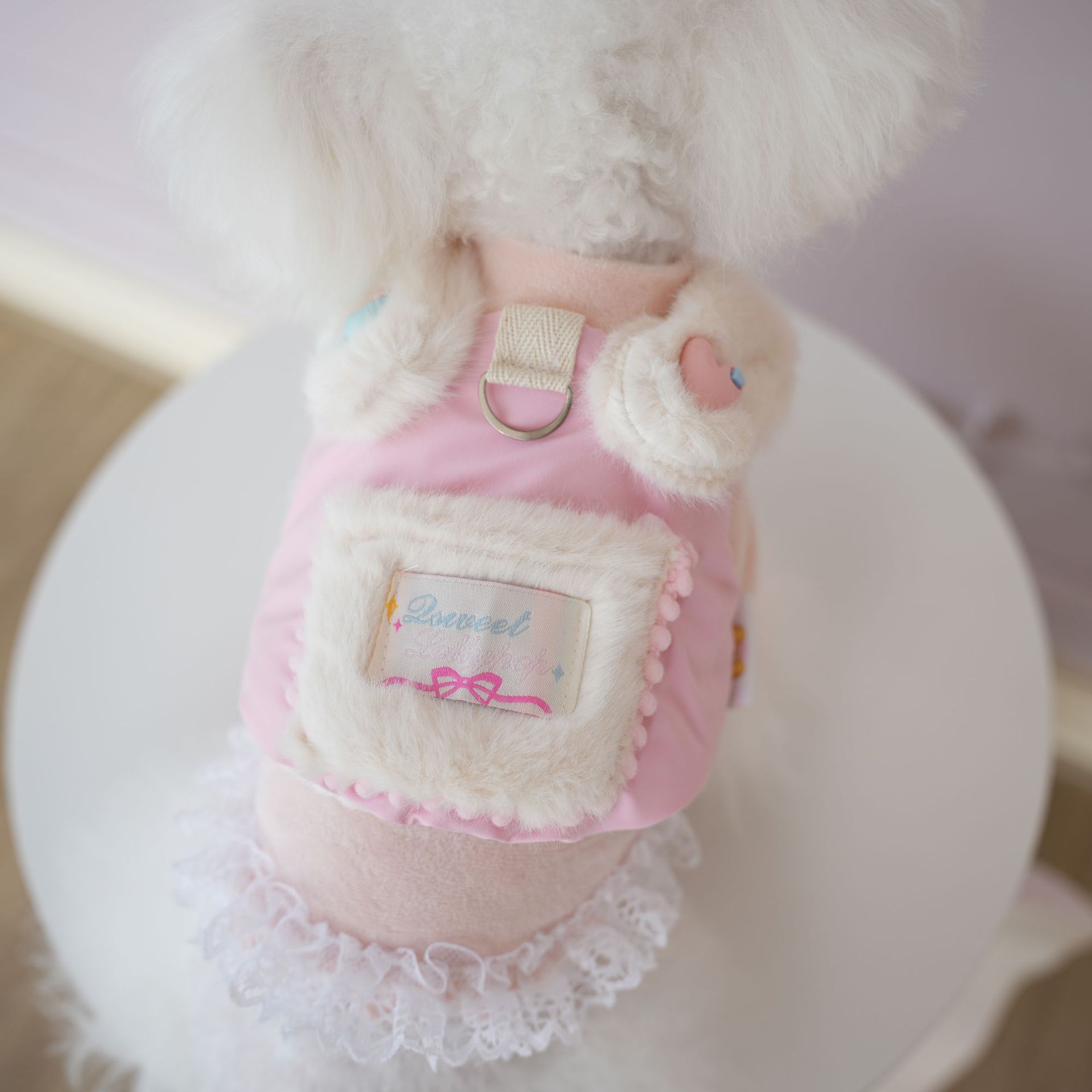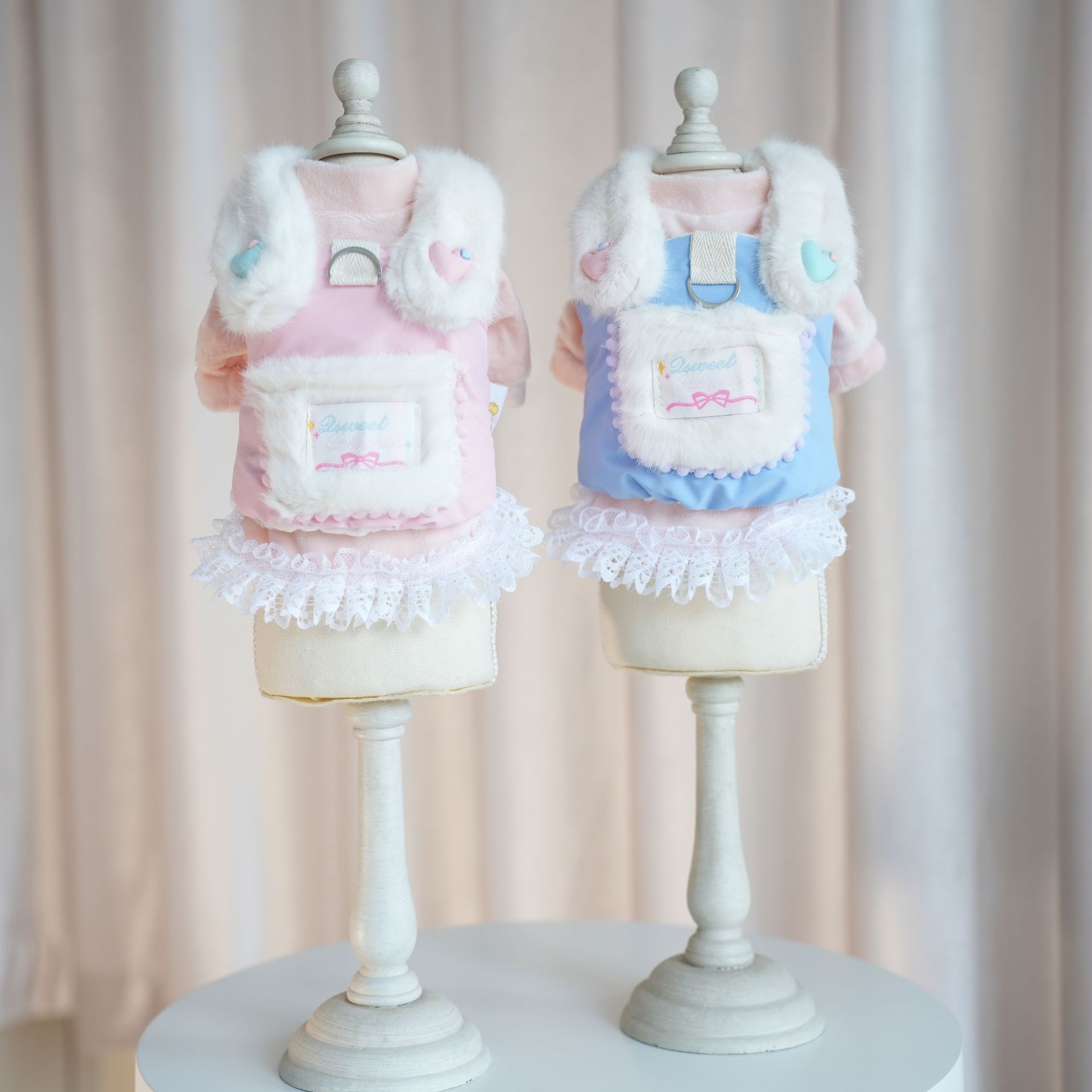 ペット犬服猫かわいいキャリア2点セットCheneryビションフリーゼ小型犬冬厚手暖かい綿の服 防寒着