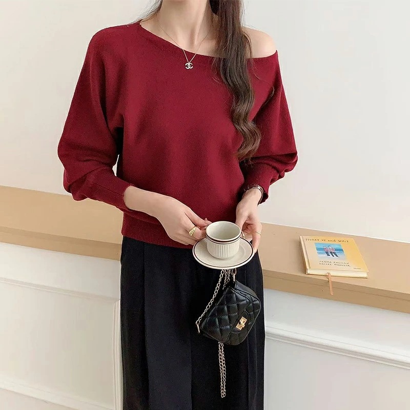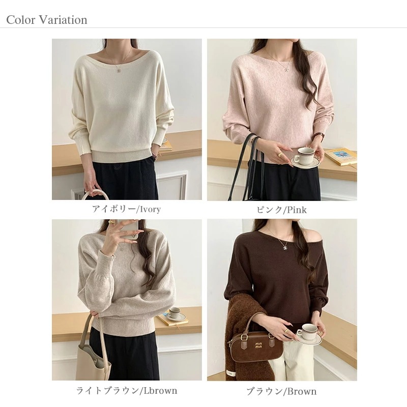 ボートネックニット ワンショルダー オフショルダー オフィスカジュアル ボートネック ニット きれいめ トップス 長袖 レディース ゆったり ワンショル