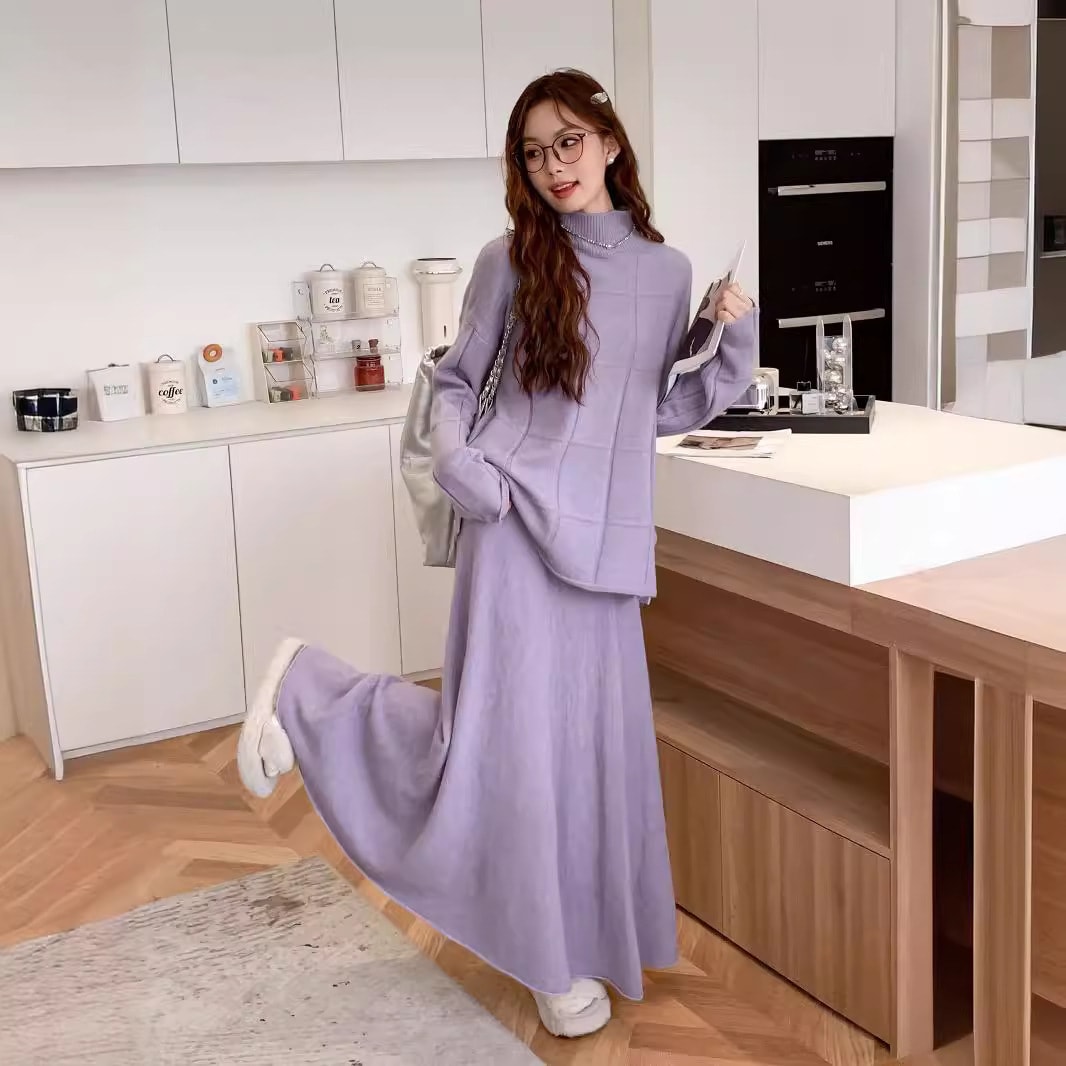 秋冬 新作 シンプル 気質 レディースセットアップ ハイネック 百掛け アウター 二点セット 上下セット セーター ニットスカート セットアップ