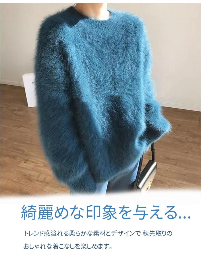 ニットセーター セーター レディース シャギーニット モヘア ニット 長袖 セーター 長袖セーター プルオーバー ニットソー インナー 秋 冬 ショート 秋冬 シャギー 無地 ふわふわ