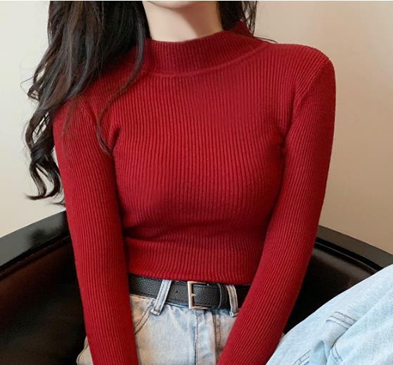 秋冬 長袖 レディース タートルネック 防寒 トップス 韓国 無地 ストレッチ 伸縮性 暖か 着痩せ ハイネック リブプチハイネック レディース 長袖 リブ編み