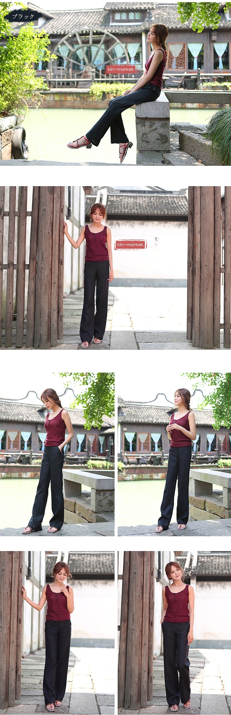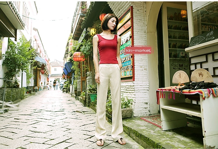 韓国ファッションリネンパンツウエストゴムレディース ガウチョパンツ ツイードパンツ 卒業式 入学式 ロングパンツ