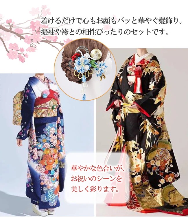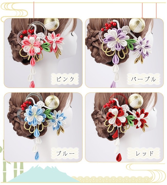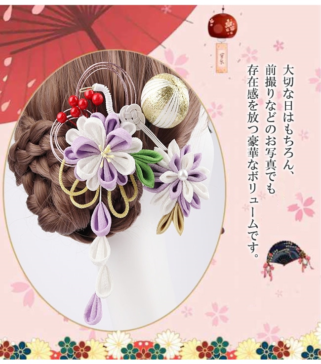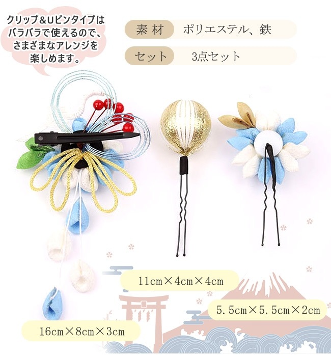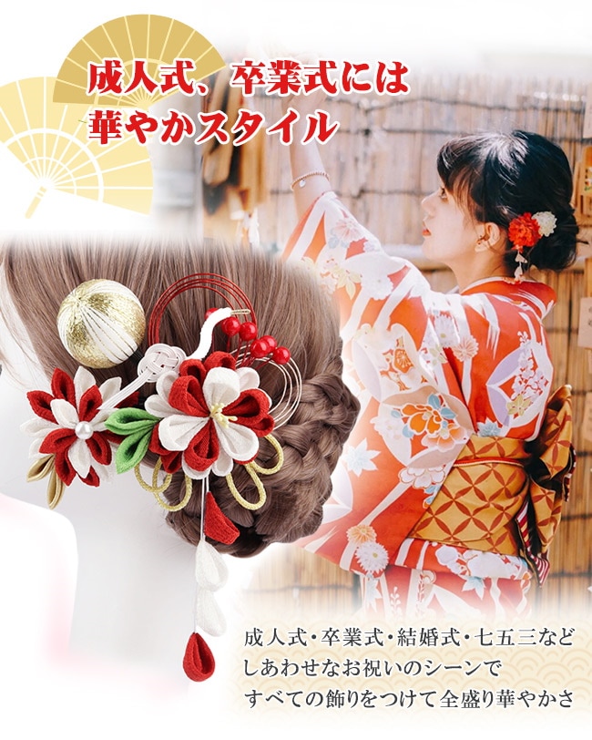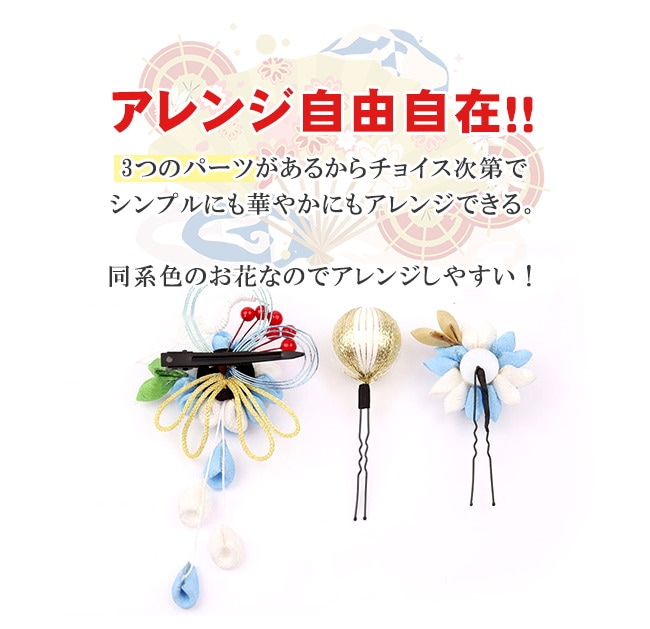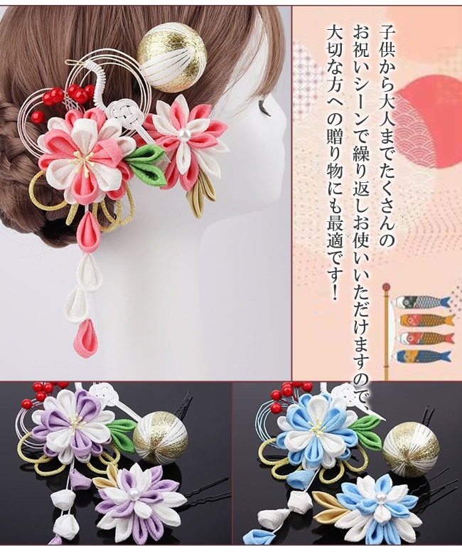 髪飾り 成人式 3点セット 髪留め Uピン 花 リボン 卒業式 七五三 お祭り 着物 浴衣 和装 結婚式 花嫁 子供 大人 プレゼント ギフト