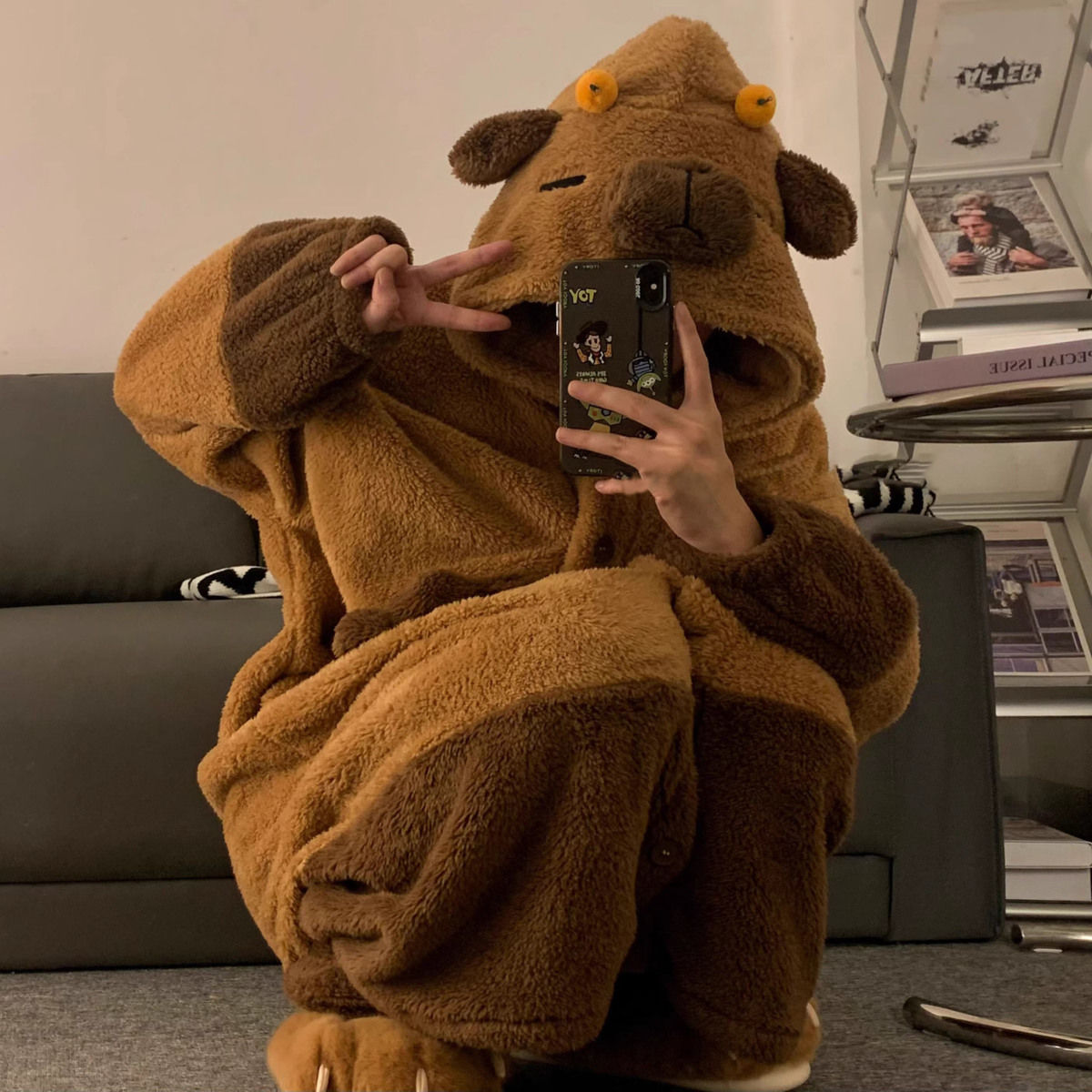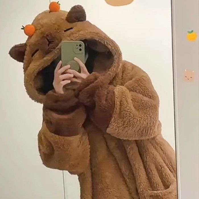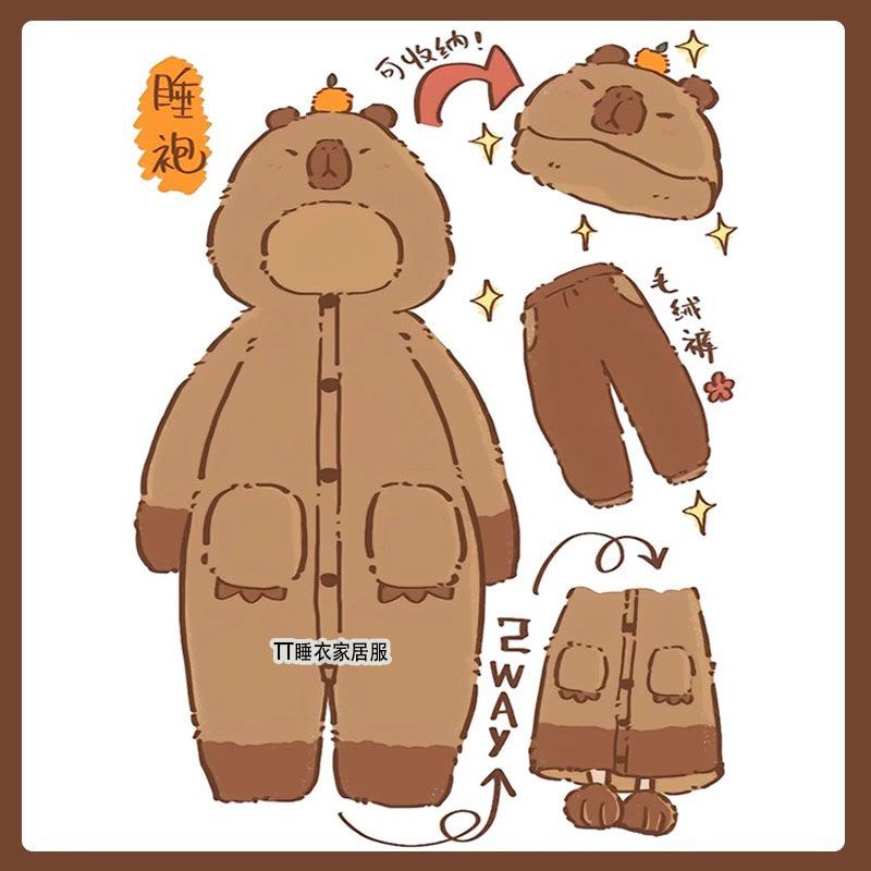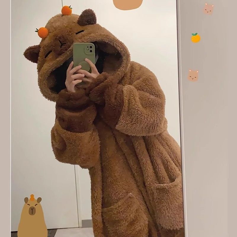 あったかルームウェアサンゴの綿毛 秋冬 カピバラパジャマ ガウン着 厚手セット ルームウェア 着ぐるみ