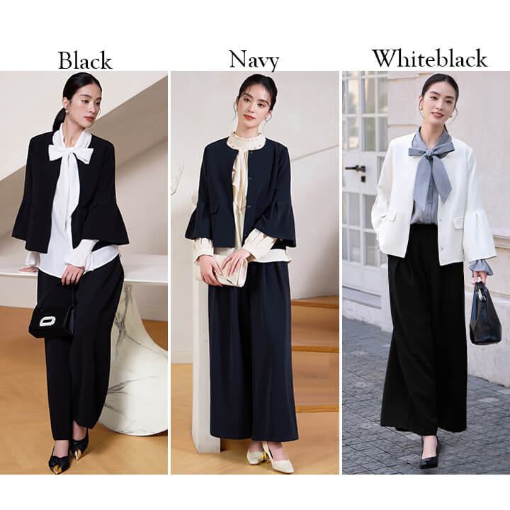 パンツドレス レディース セットアップ かっこいい きれいめ 長袖 秋冬 秋 冬 パーティードレス ドレス 結婚式 大きいサイズ 20代 30代 40代 膝下 エレガント 大人 ママ フォーマル ストレスフリー 着心地 上品 二次会 演奏会 謝恩会 同窓会 イベント ノーカラー ジャケット フレア スリーブ ふんわり ウエスト スタイル シルエット 優美 パンツスーツ コーディネート まとまる オールシーズン ブラック 黒 ネイビー 紺 ホワイトブラック 白 袖あり M L XL 9号 11号 13号 yj188621