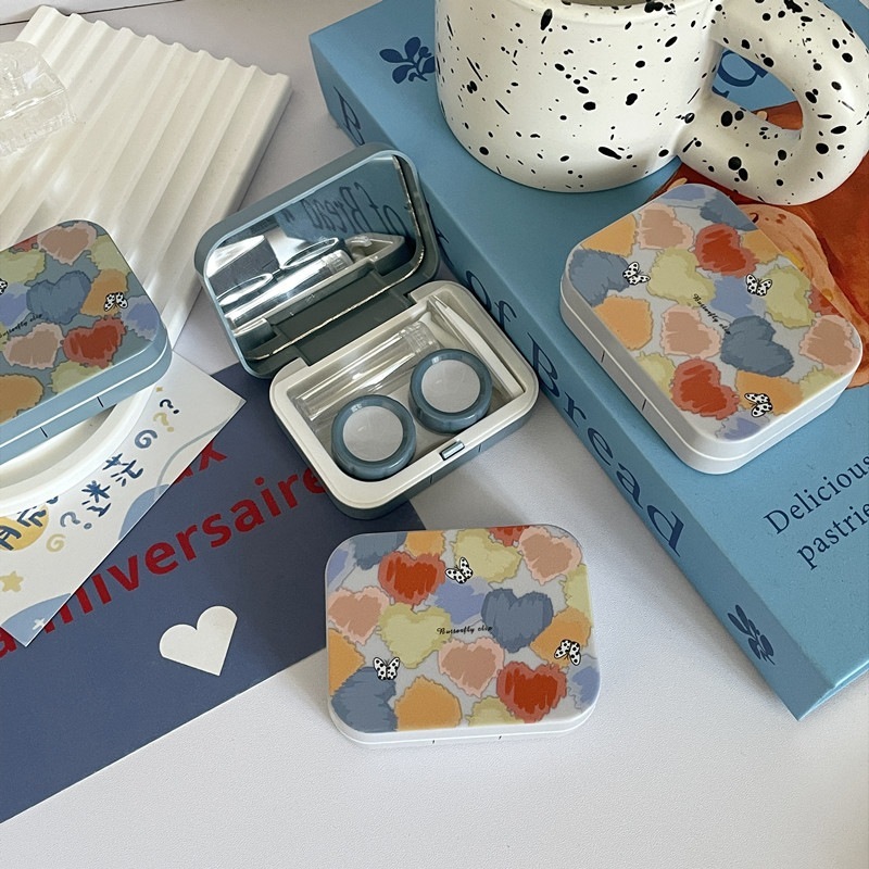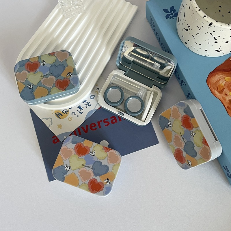 コンタクトケース ラコンケースカラコン コンタクトレンズケース取付けクリップ棒ピンセット レンズケース コンタクトレンズケース 携帯用透明 ミニボックス 収納ケース