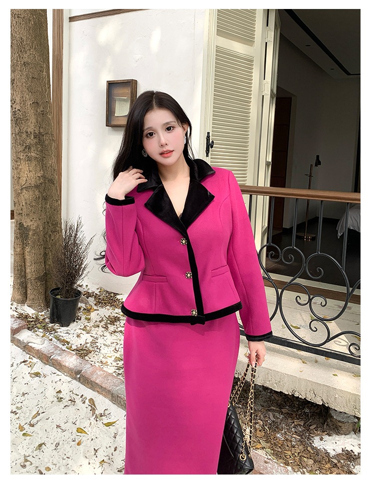 大きいサイズ XL-5XL 高級感 パープル 上下セット 着やせ フランス風 レトロ セットアップ フォーマル パーティー メガ割