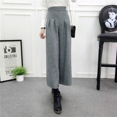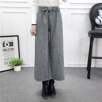 冬対策 パンツ レディース ワイドパンツ ウール混 ガウチョ 体型カバー ウエストゴム ハイウエスト ボトムス パンツ ズボン ワイド 通勤 オフィス