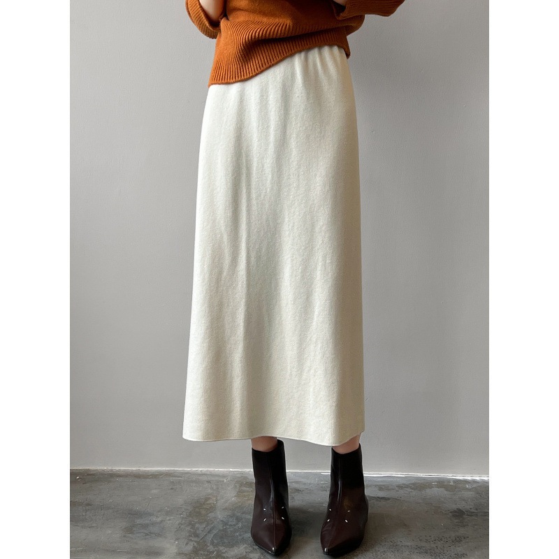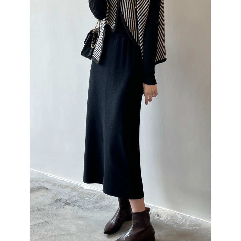 韓国ファッションミディアムスカート 4Color選べま フェミニンラインで上品なニットタイトスカート ニット生地 だから履きやすい 秋 冬 春使用 ニットスカート
