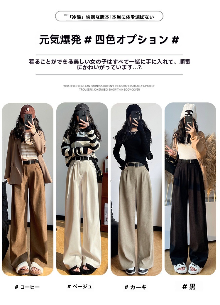 ワイドパンツ 秋冬 裏起毛 パンツ レディース ロングパンツ 微起毛 ガウチョパンツ 体型カバー パンツ ストレートパンツ ロング ロング丈パンツ コーデュロイ 秋物 裏起毛 ウェストゴム ポケット付