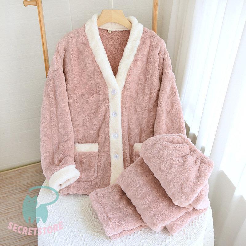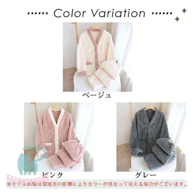 パジャマ ルームウェア レディース 厚手 寝巻き 秋 冬 長袖 前開き 寝巻き 防寒 上下セット 部屋着 かわいい もこもこ あったか おしゃれ