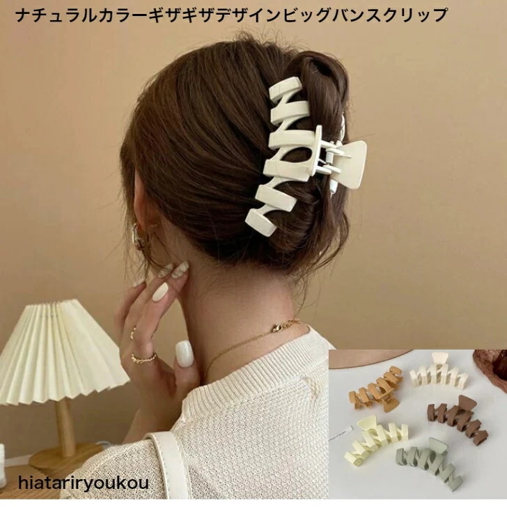 ナチュラルカラーギザギザデザインビッグバンスクリップ大人かわいいヘアアレンジレディースプレゼントプチプラハーフアップ軽い