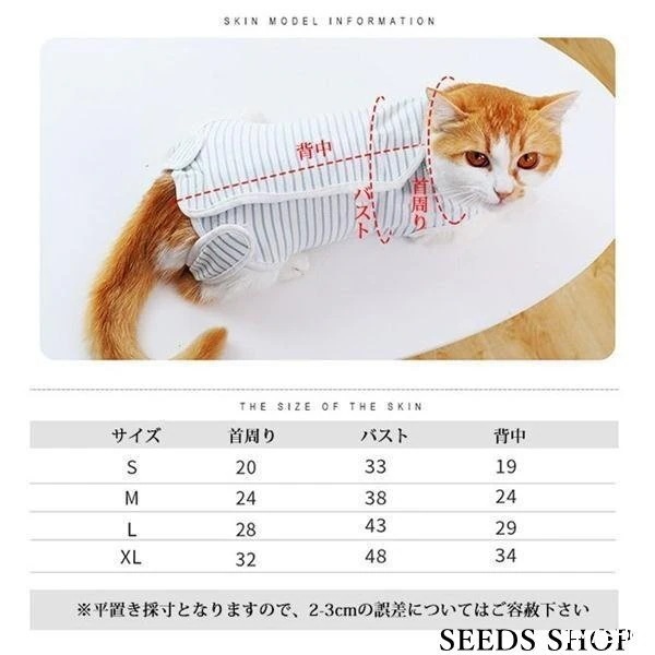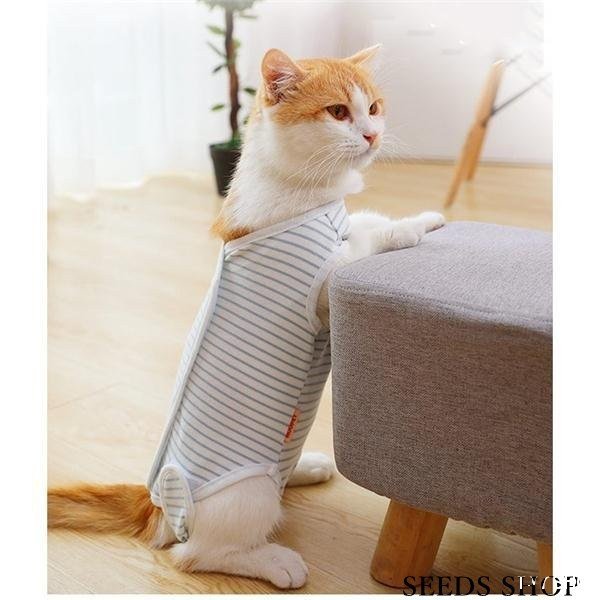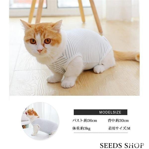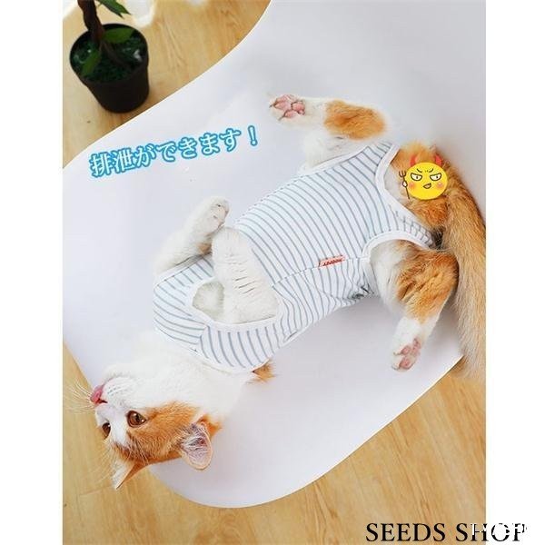 術後服 猫用 術後ウェア 雄雌兼用 ペット介護服 傷口保護 通気 柔らかい 傷舐め ストライプ 避妊 服 アクセサリー