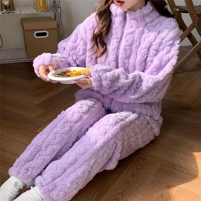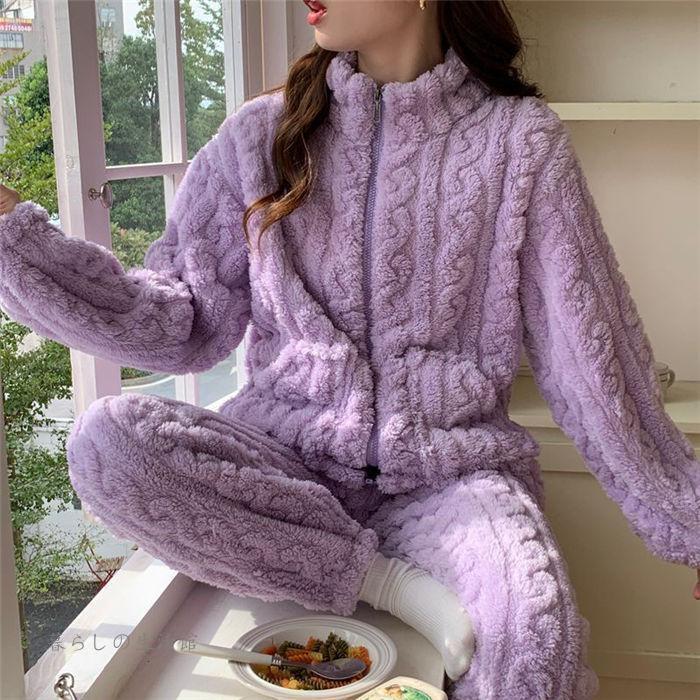 パジャマ ルームウェア 2点セット 上下セット レディース 暖かい 裏起毛 ハイネック 長袖 ロングパンツ セットアップ もこもこ 部屋着 可愛い ナイトウェア