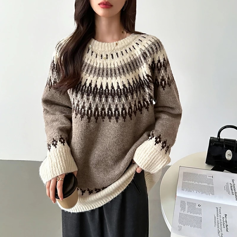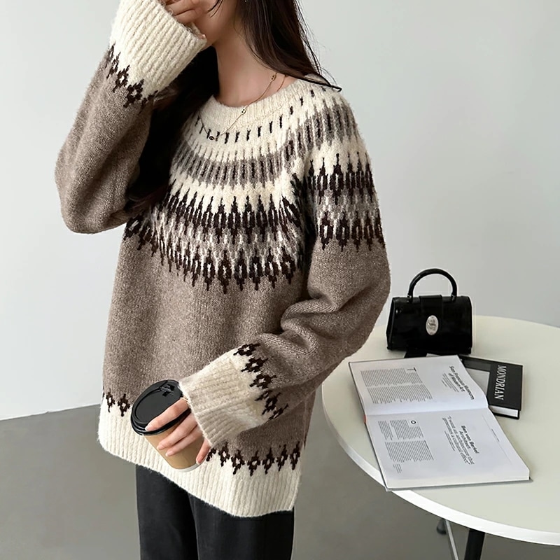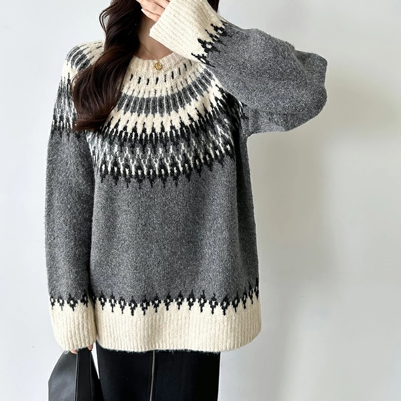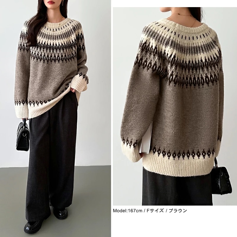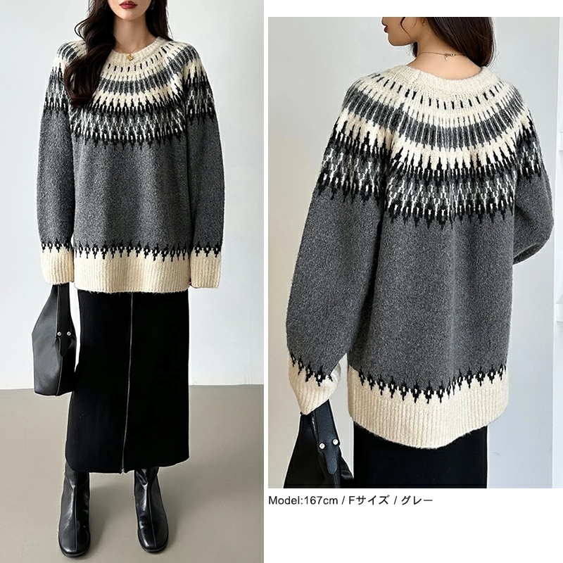 ルディック柄セーター ニット オーバーサイズ セーター ノルディック ニット レディース トップス 長袖 ゆったり ノルディック柄 ニットセーター プルオーバー 大きいサイズ