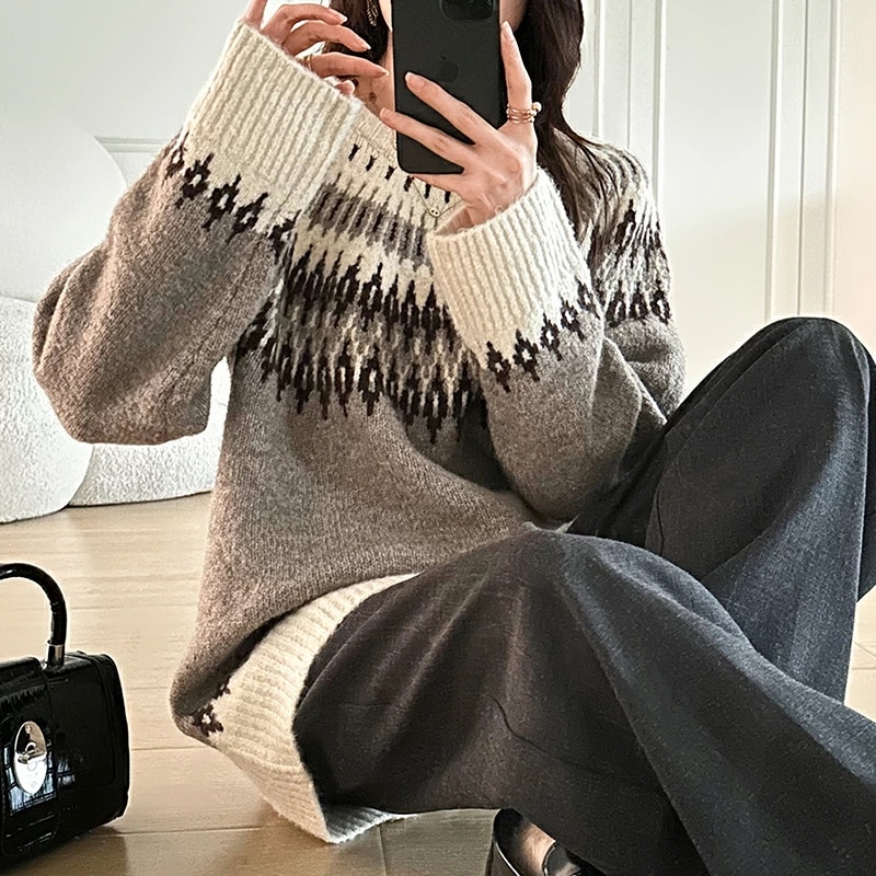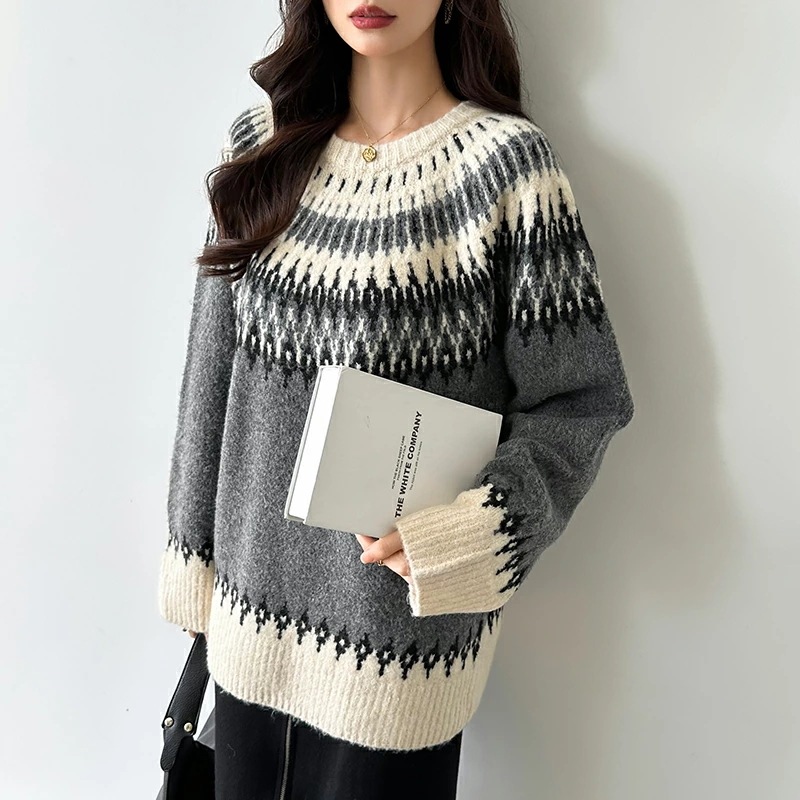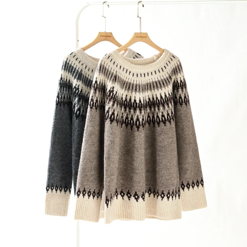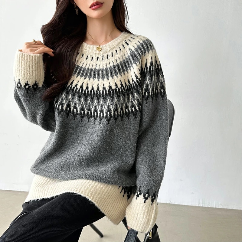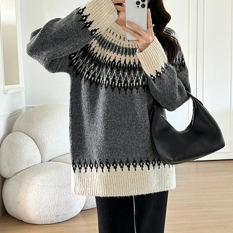 ルディック柄セーター ニット オーバーサイズ セーター ノルディック ニット レディース トップス 長袖 ゆったり ノルディック柄 ニットセーター プルオーバー 大きいサイズ