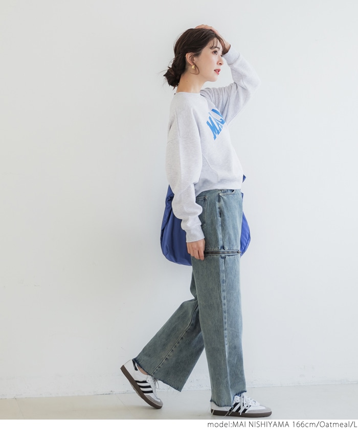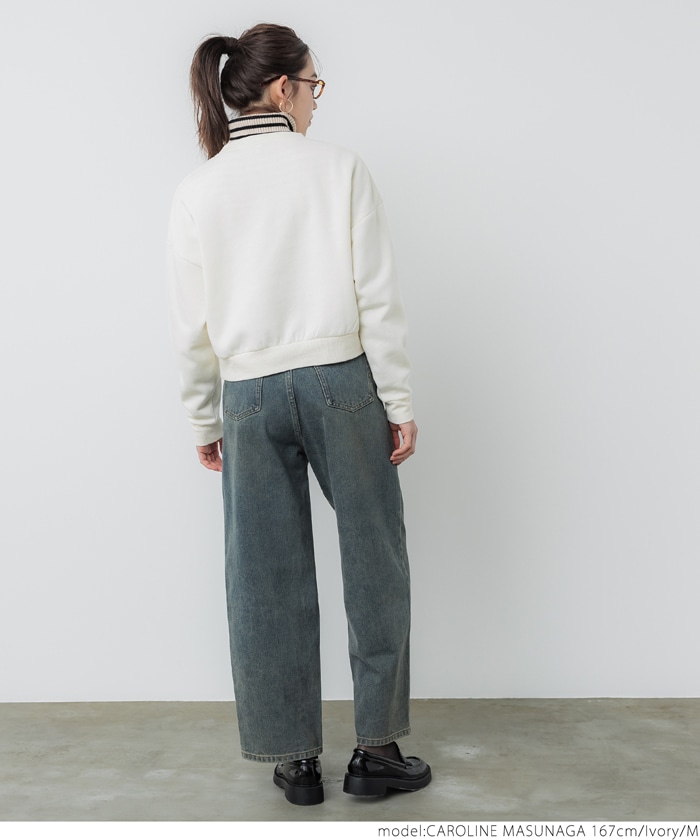 coca お正月値下げ ポリエステルコットン裏起毛フロッキークロップドスウェットトップス レディース トレーナー