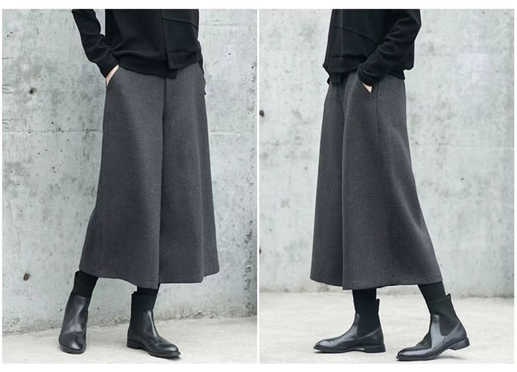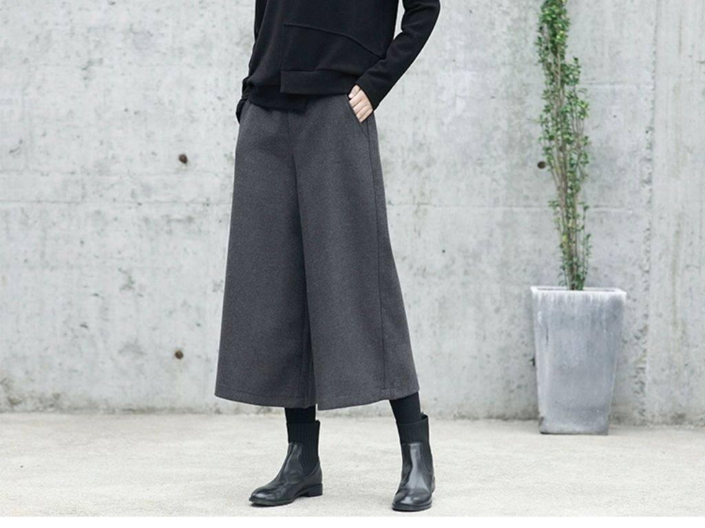 ワイドパンツ パンツ レディース 秋冬 9分丈 微起毛 スカーチョガウチョパンツ ウール調 ゆったり ウエストゴム フォーマル 大きいサイズ イージーパンツ ひざ下 ポケット ロングパンツ 美脚 落ち