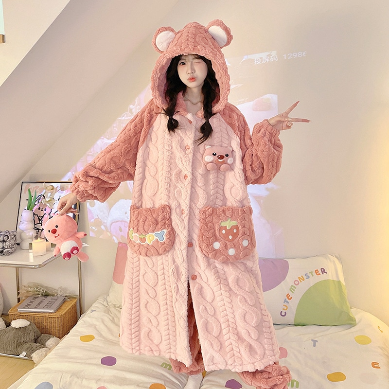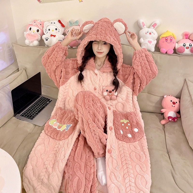フランネルパジャマ レディース 秋冬モデル 中綿入り 厚手 あったか バスローブ かわいい フード付きローブ コーラルベルベット ホームウェア